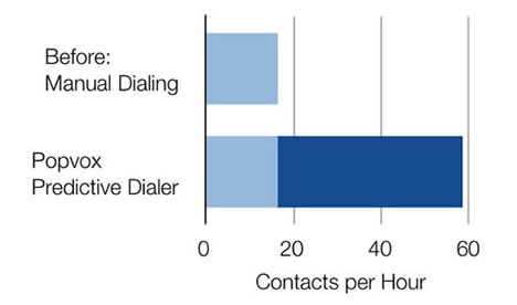 When Popvox replaces "mostly waiting" with "mostly talking", we allow far more contacts — delivered with more attention by happier agents. We put the agent in charge to initiate new calls at their own pace.